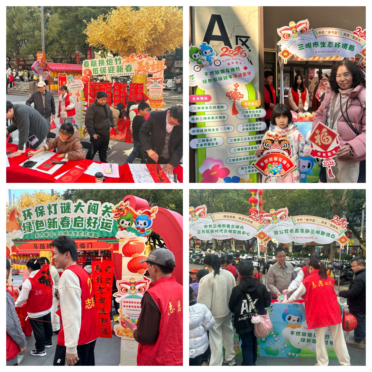 本次活动由三明市生态环境局、中共三明市委文明办、中华环保联合会(三明)、三明市文学艺术界联合会等单位主办,三明学院资源与化工学院、三元区新时代文明实践中心、三明市三元生态环境局、三明市书法家协会、三明市环境保护产业协会、致公党省直支部三明联络点等单位协办,多部门联动发力,共同携手社会各界人士,花式解锁绿色新年N种玩法。